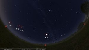 星の世界「明け方の惑星」 2022-05-27 最終更新日時 : 2022-04-29 04 春の星空には、春の大三角が輝いています。その星のひとつ、「真珠星」と呼ばれる青白い星スピカはおとめ座を探す目印の星です。そのおとめ座の上半身には、銀河がたくさん集まる場所があります。この銀河の集団が「おとめ座銀河団」。ブラックホールシャドウの撮影で話題になった巨大な銀河M87も含む大小千個以上の銀河が集まっています。 是非、望遠鏡や双眼鏡を使って、銀河が寄り添う姿を観察してみてください。 credit: stellarium(5月20日3:30頃の空) credit: stellarium(6月10日3:30頃の空) 協力:つくばエキスポセンター
