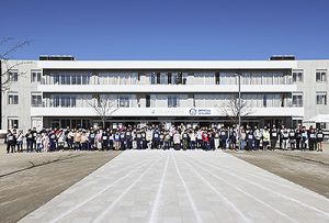 150周年を記念して2022年4月には、子ども達が考えた図案で、航空写真も撮影(さつえい)した。全校児童が参加し、パネルを頭上にかかげて校章と「祝150周年」の文字を描(えが)き、ドローンを使っての撮影を楽しんだ。