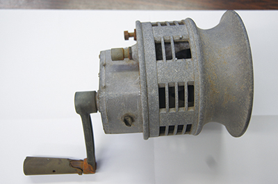 写真のサイレンは、今から70年前に作られた消防ポンプといっしょに使われていました。