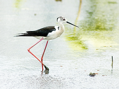 25センチもある長くて赤い足、ピンセットのようなするどくとがったくちばしが特ちょうで、水辺を歩き回り、小さなこん虫や小魚などをついばんで食べます。
