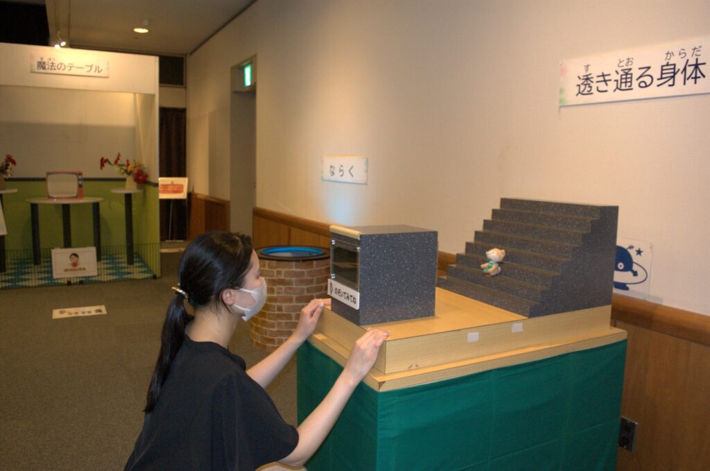 テーブル上にある穴から顔を出すと体が消えたり、のぞき穴からのぞくと自分の顔が万華鏡(まんげきょう)に写りこんだり――。光を反射する鏡の性質を利用して、不思議な体験が楽しめる企画(きかく)展「のぞいてみよう 鏡と光の不思議な世界」が7月15日(土)から、つくば市吾妻のつくばエキスポセンターで始まった。9月3日(日)まで。 鏡と光の科学がテーマ。鏡の不思議を体験できる「鏡の世界」と無限に広がる美しくはなやかな世界を楽しめる「万華鏡の世界」の二コーナーに分かれ、あるはずのものが見えなかったり、無数に像が見えたりと、異次元に迷いこんだような実験が楽しめる鏡や万華鏡をつかった仕かけや、幻想的(げんそうてき)な美しさに引きこまれる万華鏡作家の作品などあわせて40点を展示する。 万華鏡の仕組みを解説するコーナーもあり、同展を担当するエキスポセンター運営部の松岡安希子さんは、「なんでこうなるんだろうと考えながら、ご家族で楽しんでもらえたら」と話している。 8月20日(日)には、万華鏡作家中里保子さんによるワークショップ「万華鏡をつくろう!」も開かれる予定。くわしくはHP。つくばエキスポセンター